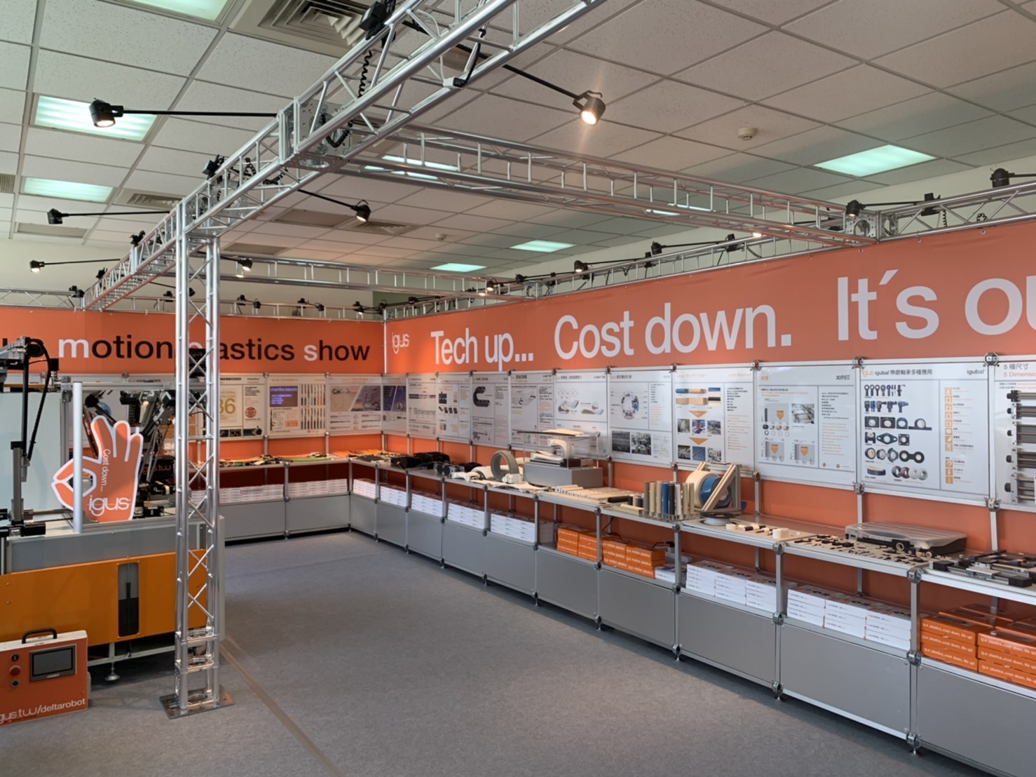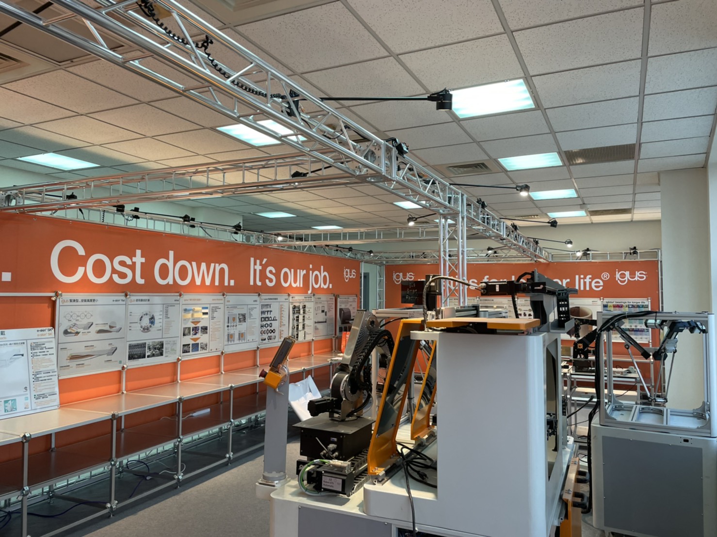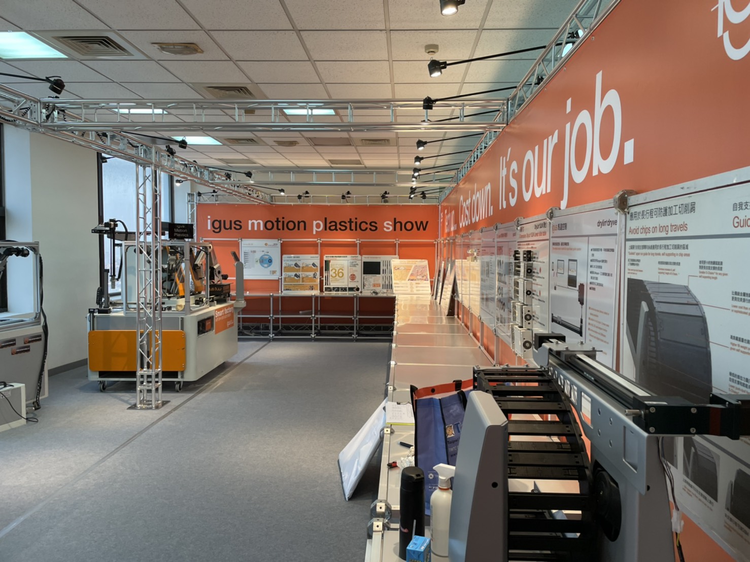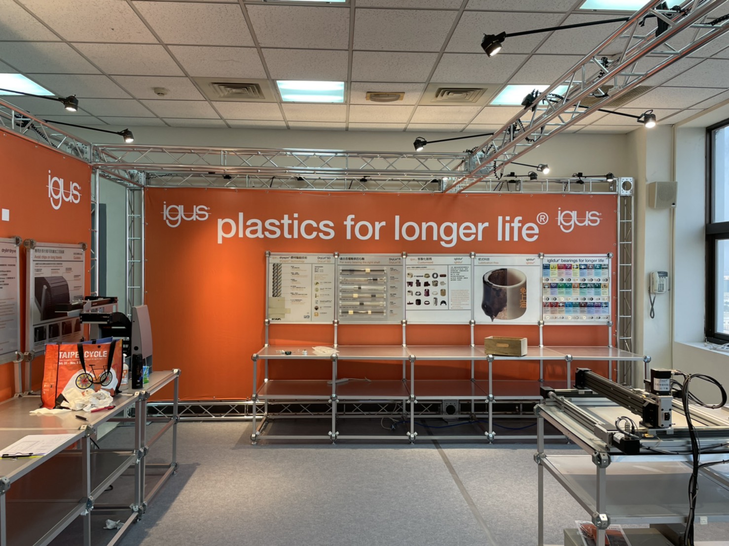 此次的施工對象為台灣易格斯公司,從原本空蕩蕩的辦公室改成專業的展覽展示空間,從TRUSS搭建、大圖輸出製作、燈具架設到地毯擺設,每一項的小環節,我們都以專業的經驗為其把關,致力協助客戶達成目標。