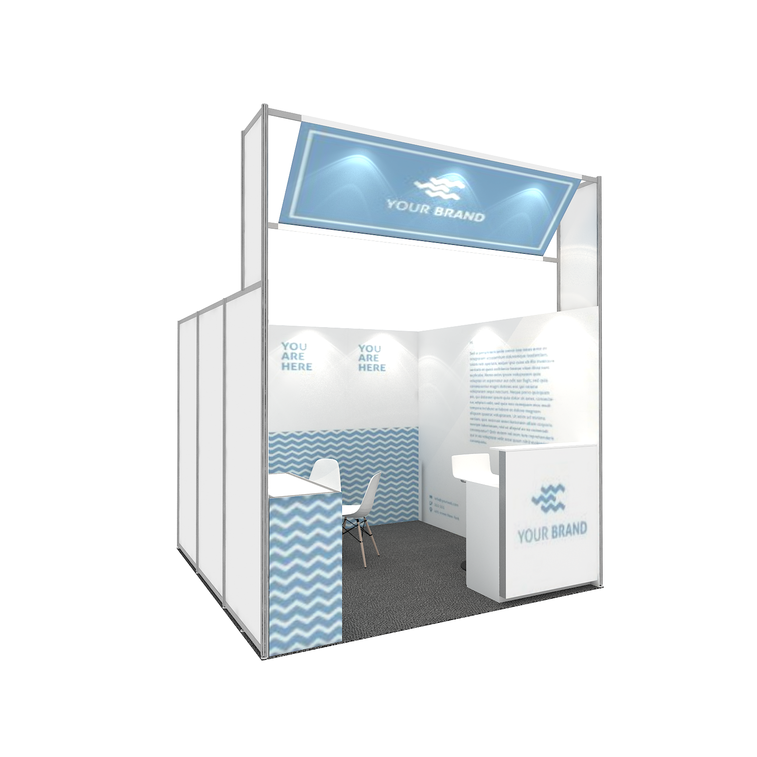 套裝攤位裝潢包含以下: • 攤位大小:300X300cm • 展位高度:350cm • 大圖輸出:1式 • 組合隔間:1式 • 地毯:(可選基本色系) • 30w燈具:3盞 • 70w燈具:7盞 • 插座:2個(110V/5A) • 櫃台:1座 • 展櫃:1座 • 圓桌:1張 • 北歐風椅:4張 • 木門:1組 • 進撤場施工(林口以南需加車資)