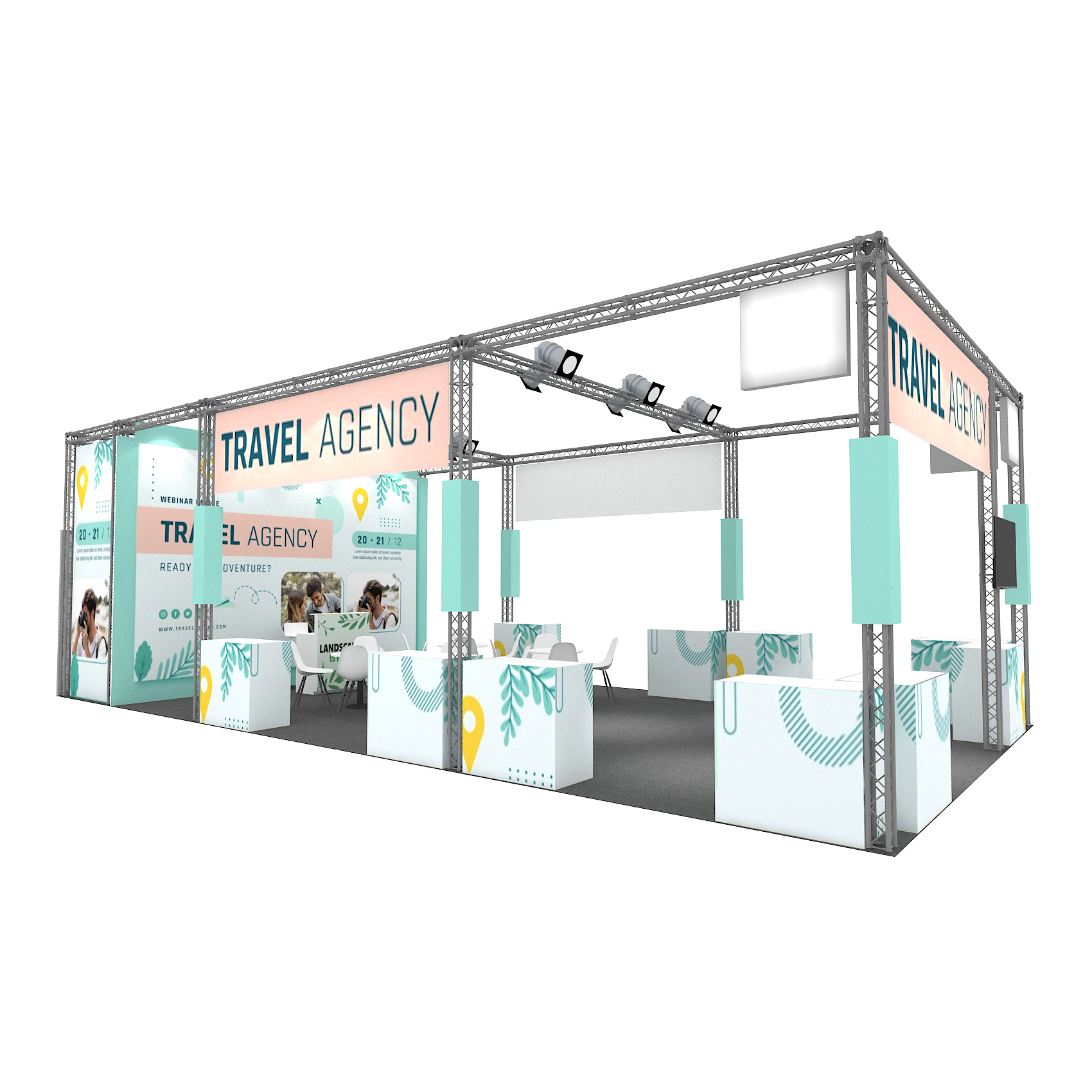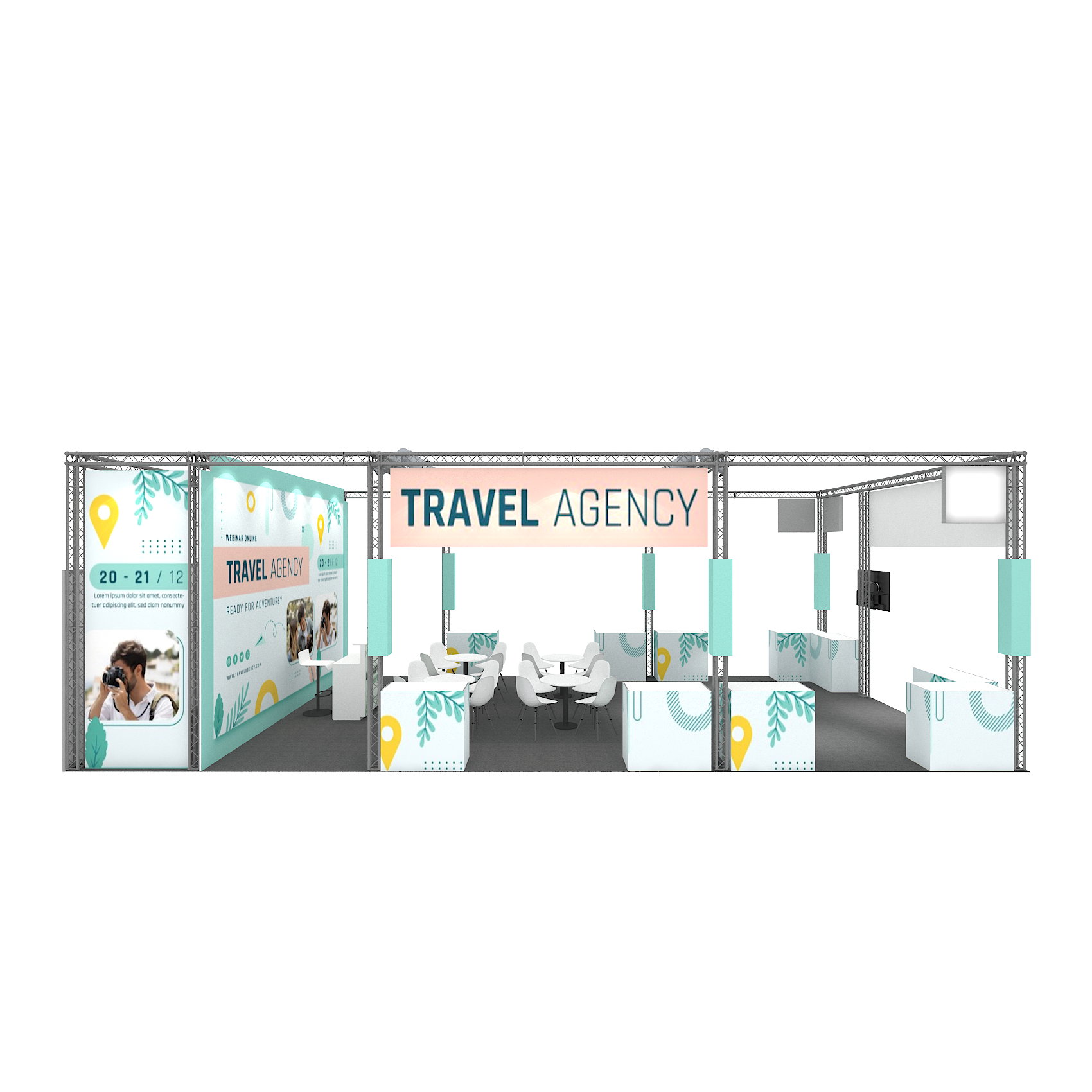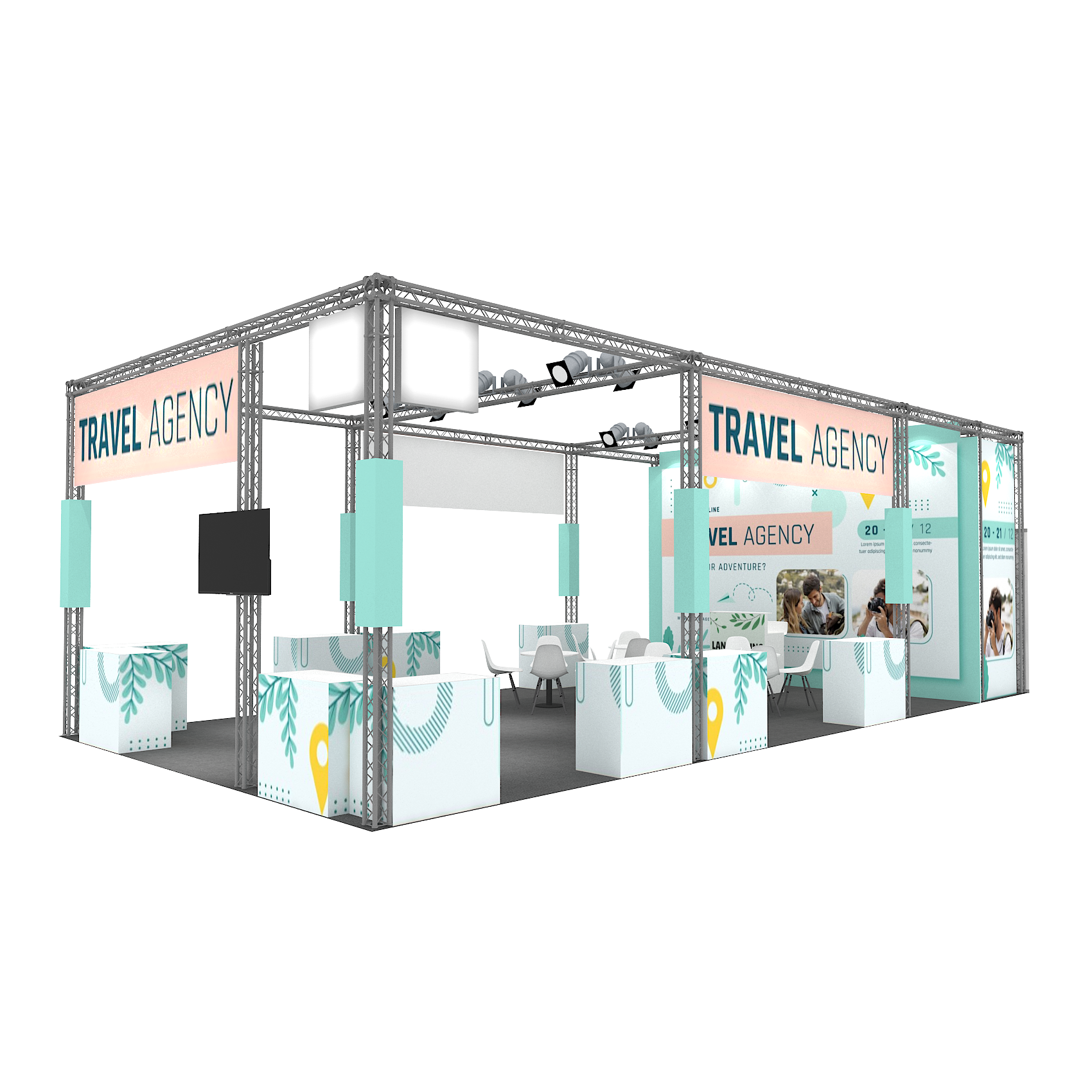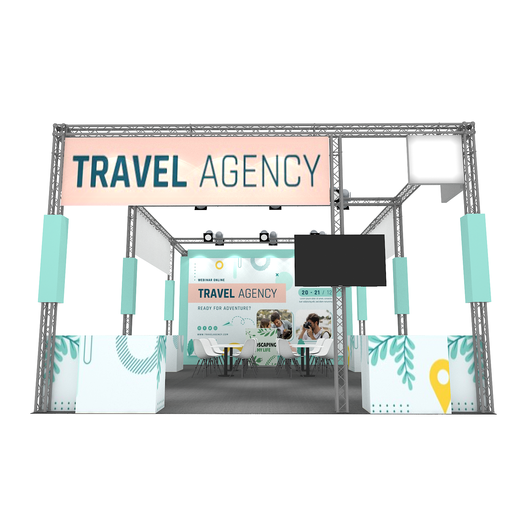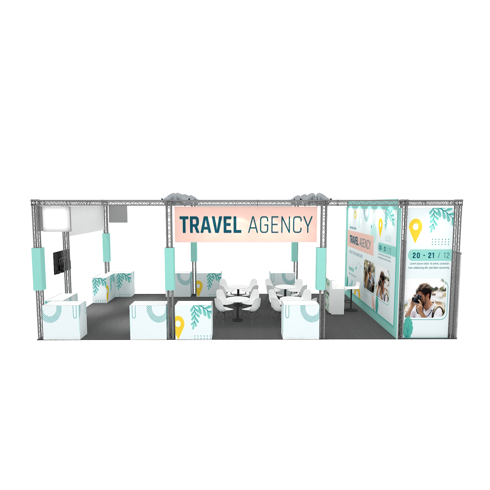套裝攤位裝潢包含以下: • 攤位大小:600X1200cm • 展位高度:400cm • 大圖輸出:1式 • 組合隔間:1式 • TRUSS:1式 • 地毯:(可選基本色系) • 70w燈具:20盞 • PAR燈:5個 • 插座:2個(110V/5A) • 燈箱櫃台:1座 • 玻璃展櫃:1座 • 電視:1台 • 北歐圓桌:4張 • 北歐風椅:16張 • 吧檯椅:1張 • 木門:1組 • 進撤場施工(林口以南需加車資)