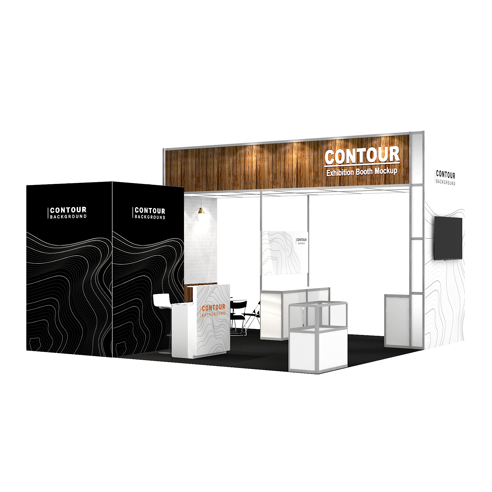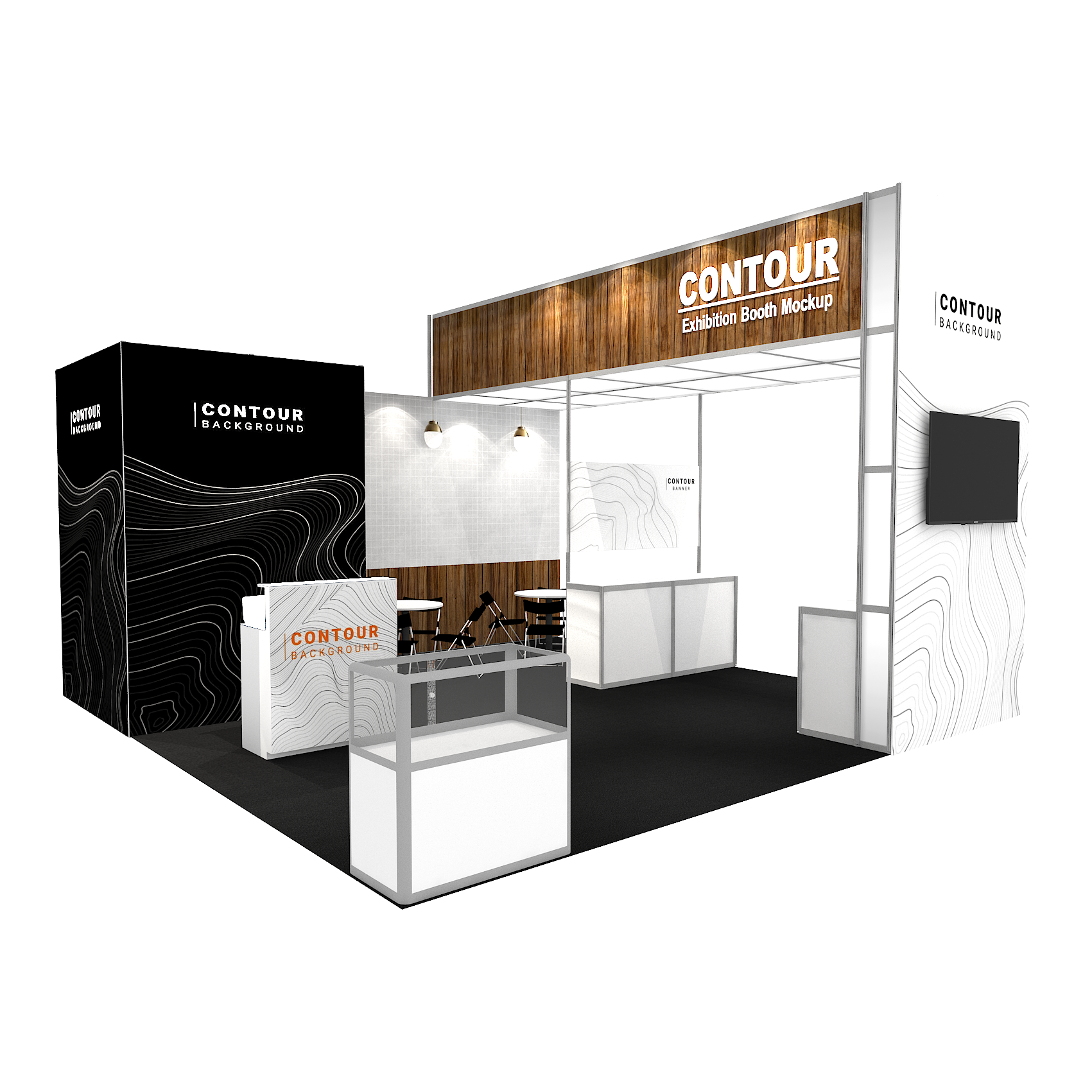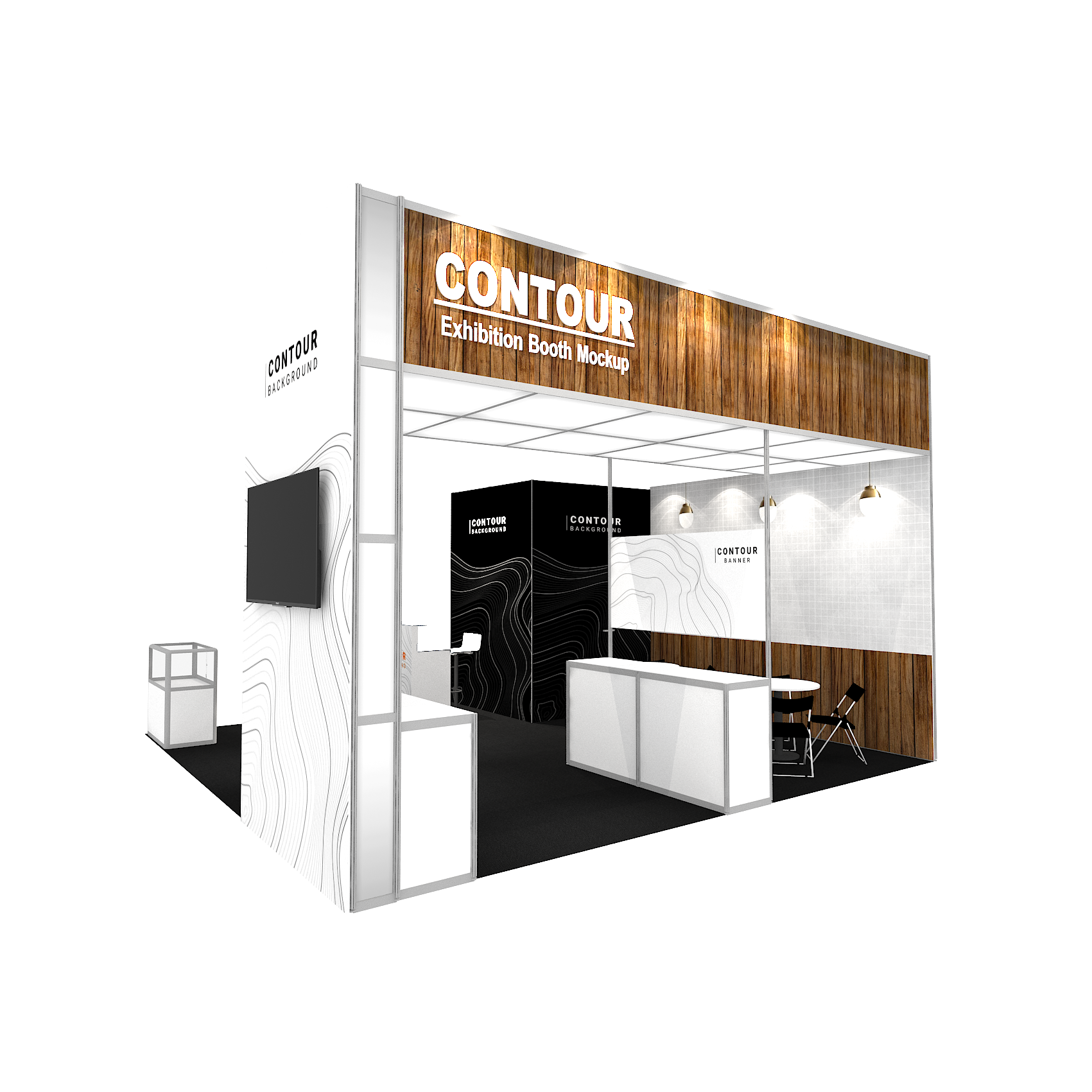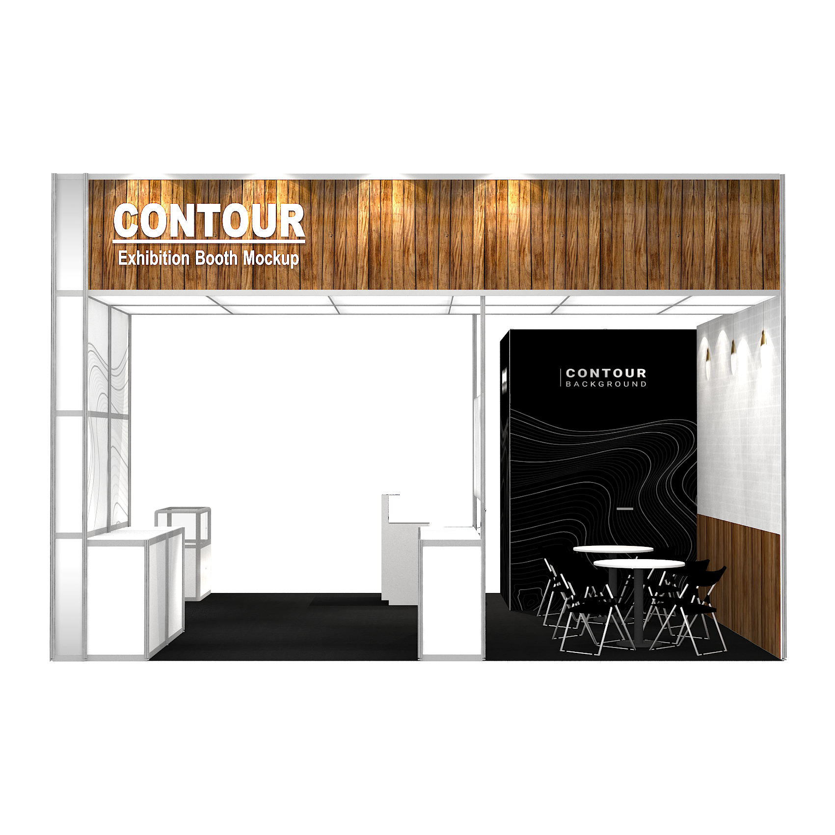套裝攤位裝潢包含以下: • 攤位大小:600X600cm • 展位高度:400cm • 大圖輸出:1式 • 組合隔間:1式 • 地毯:(可選基本色系) • 70w燈具:20盞 • 插座:2個(110V/5A) • 燈箱櫃台:1座 • 展櫃:3座 • 玻璃展櫃:1座 • 圓桌:2張 • 摺疊椅(黑):8張 • 吧檯椅:1張 • 木門:1組 • 進撤場施工(林口以南需加車資)