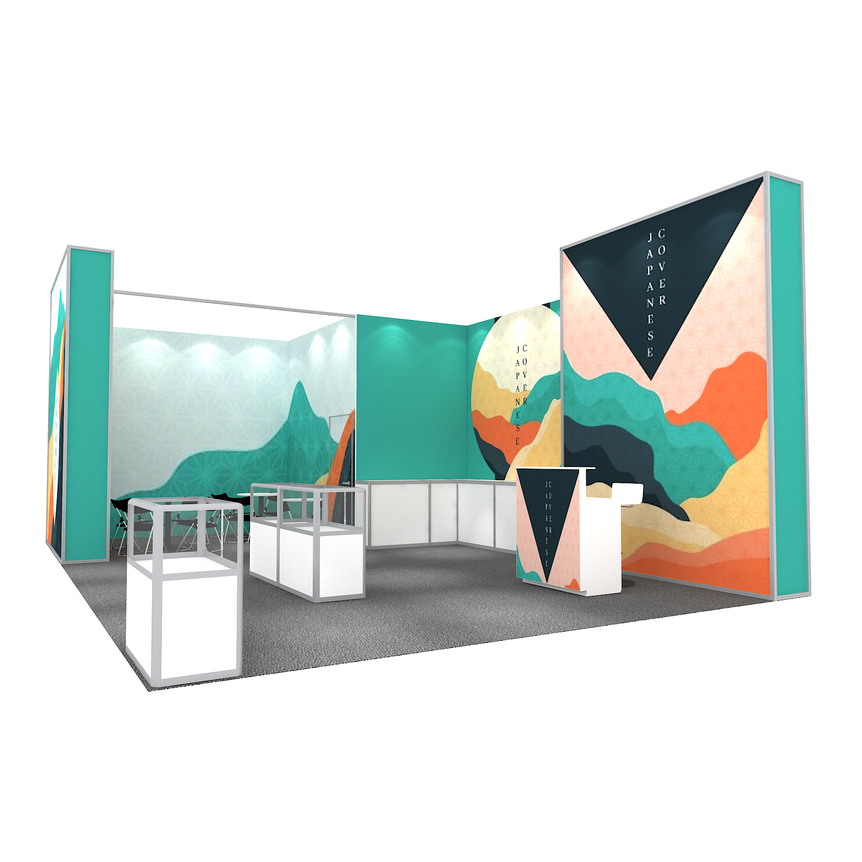 套裝攤位裝潢包含以下: • 攤位大小:600X900cm • 展位高度:400cm • 大圖輸出:1式 • 組合隔間:1式 • 地毯:(可選基本色系) • 70w燈具:20盞 • 插座:2個(110V/5A) • 燈箱櫃台:1座 • 玻璃展櫃:3座 • 展櫃:4座 • 圓桌:2張 • 摺疊椅(黑):8張 • 吧檯椅:8張 • 木門:1組 • 進撤場施工(林口以南需加車資)
