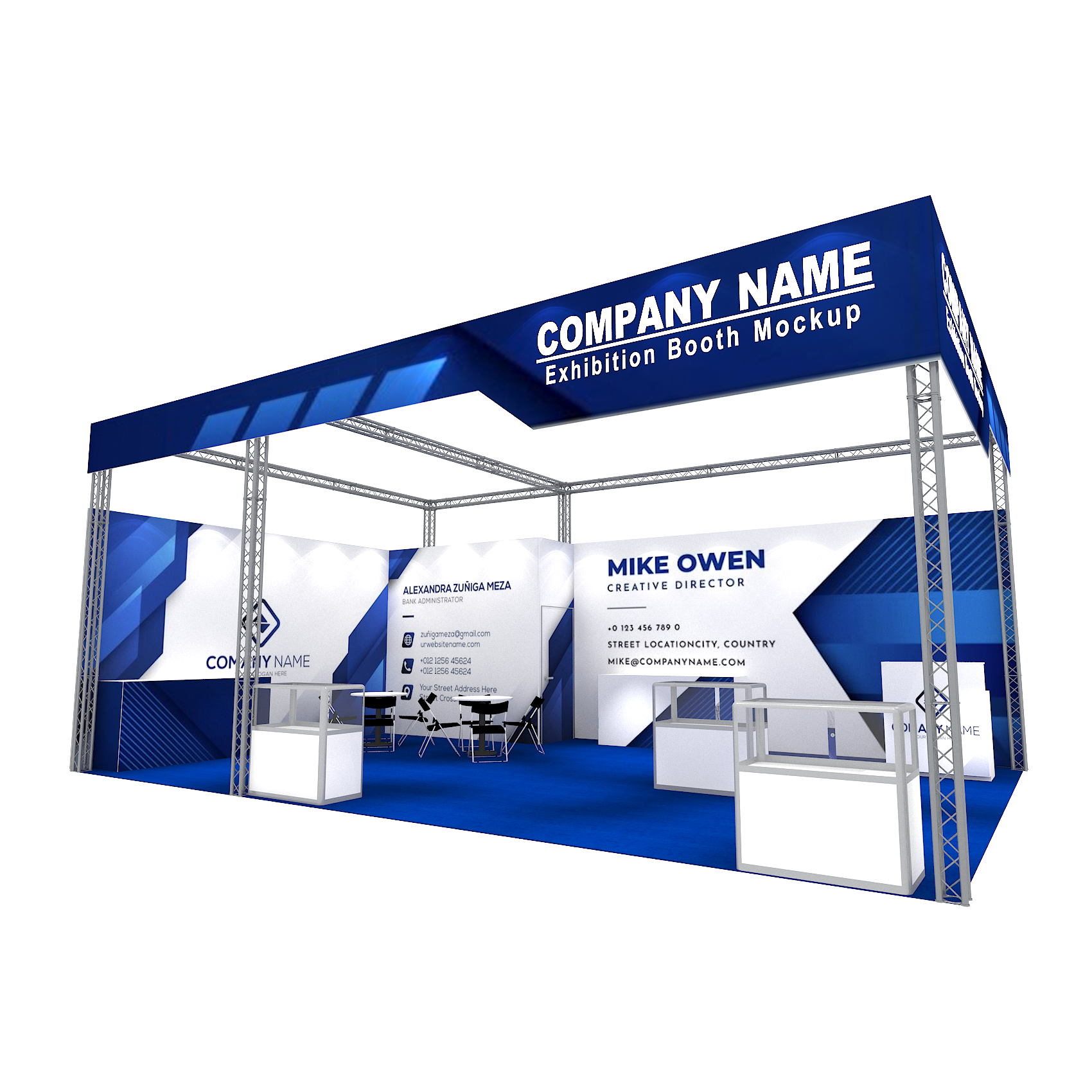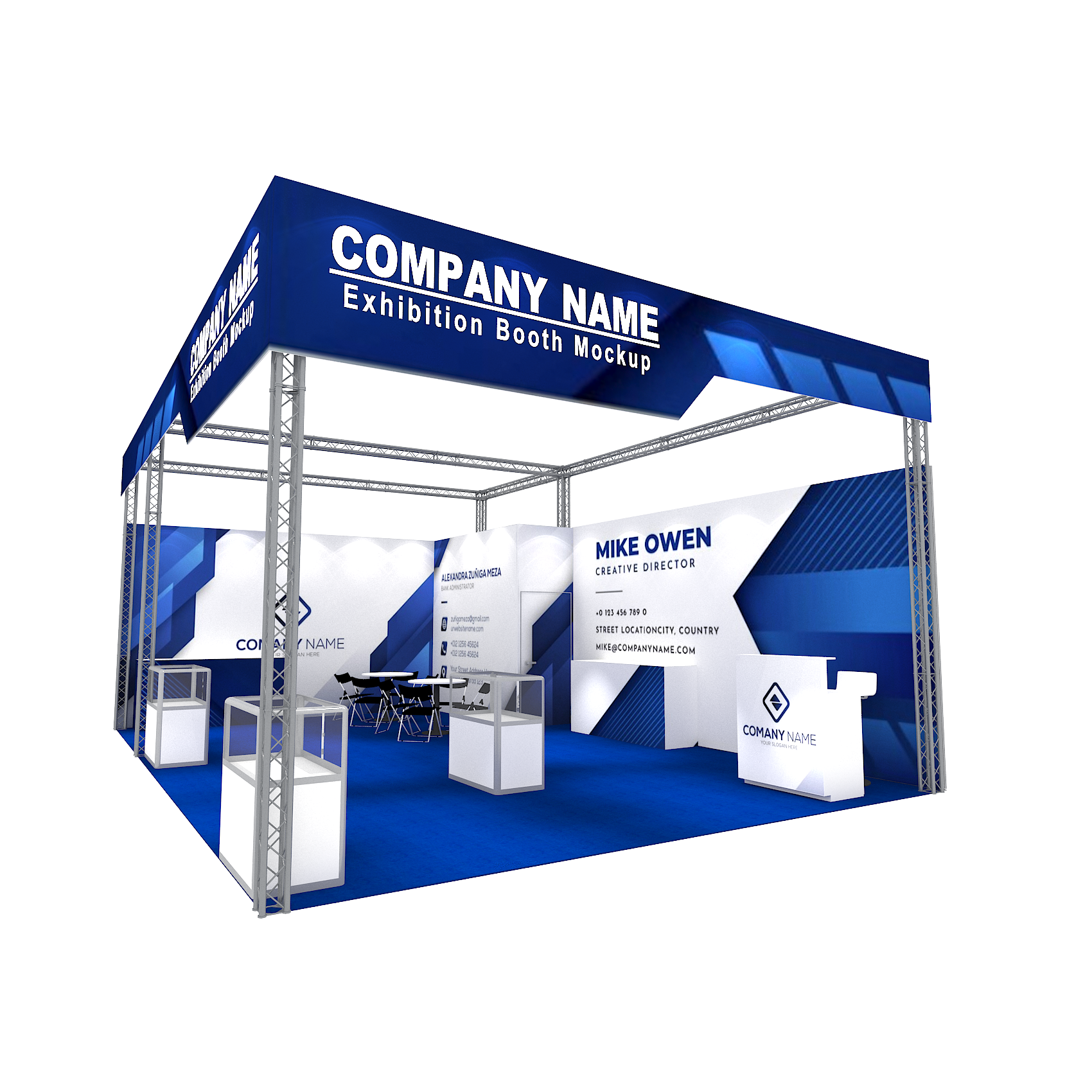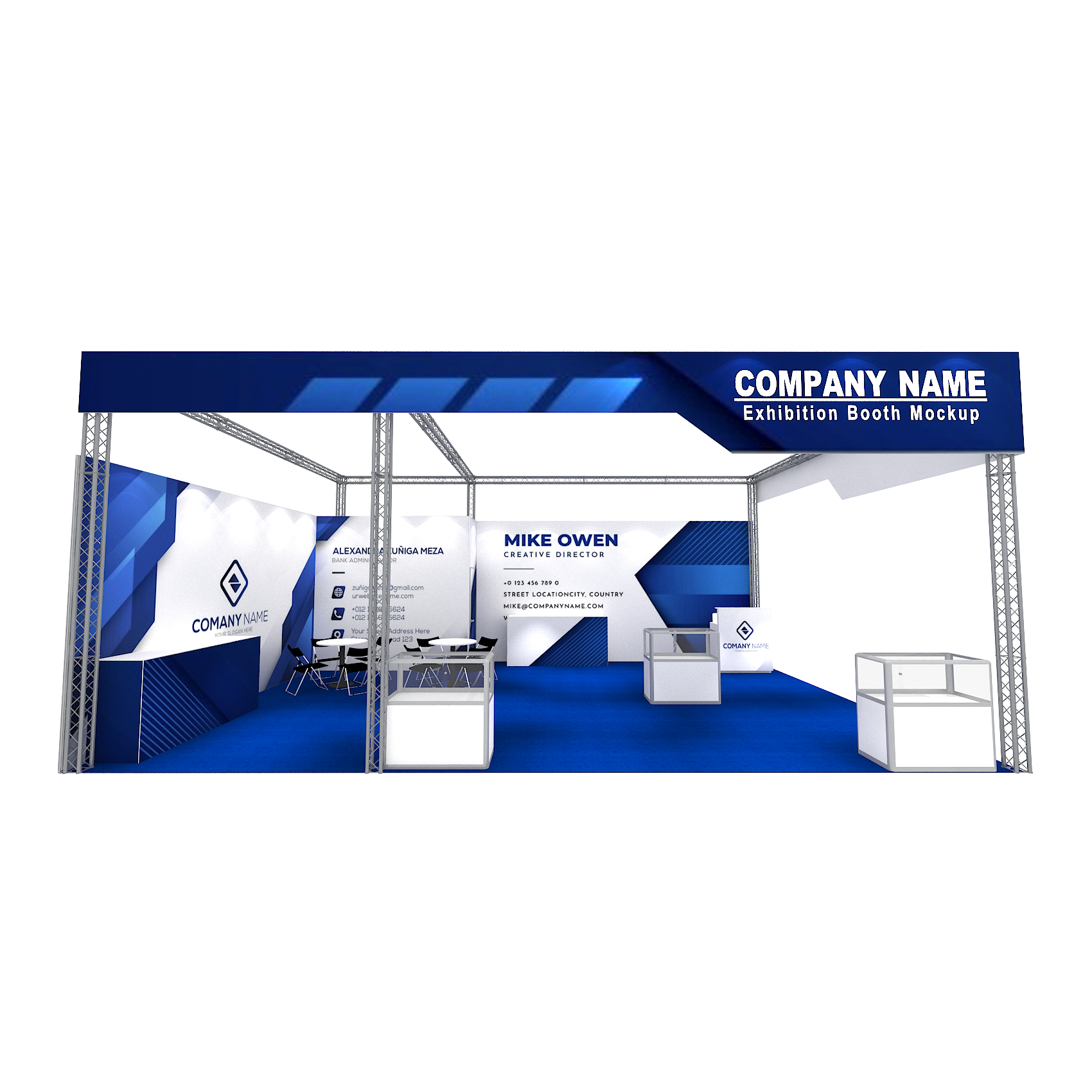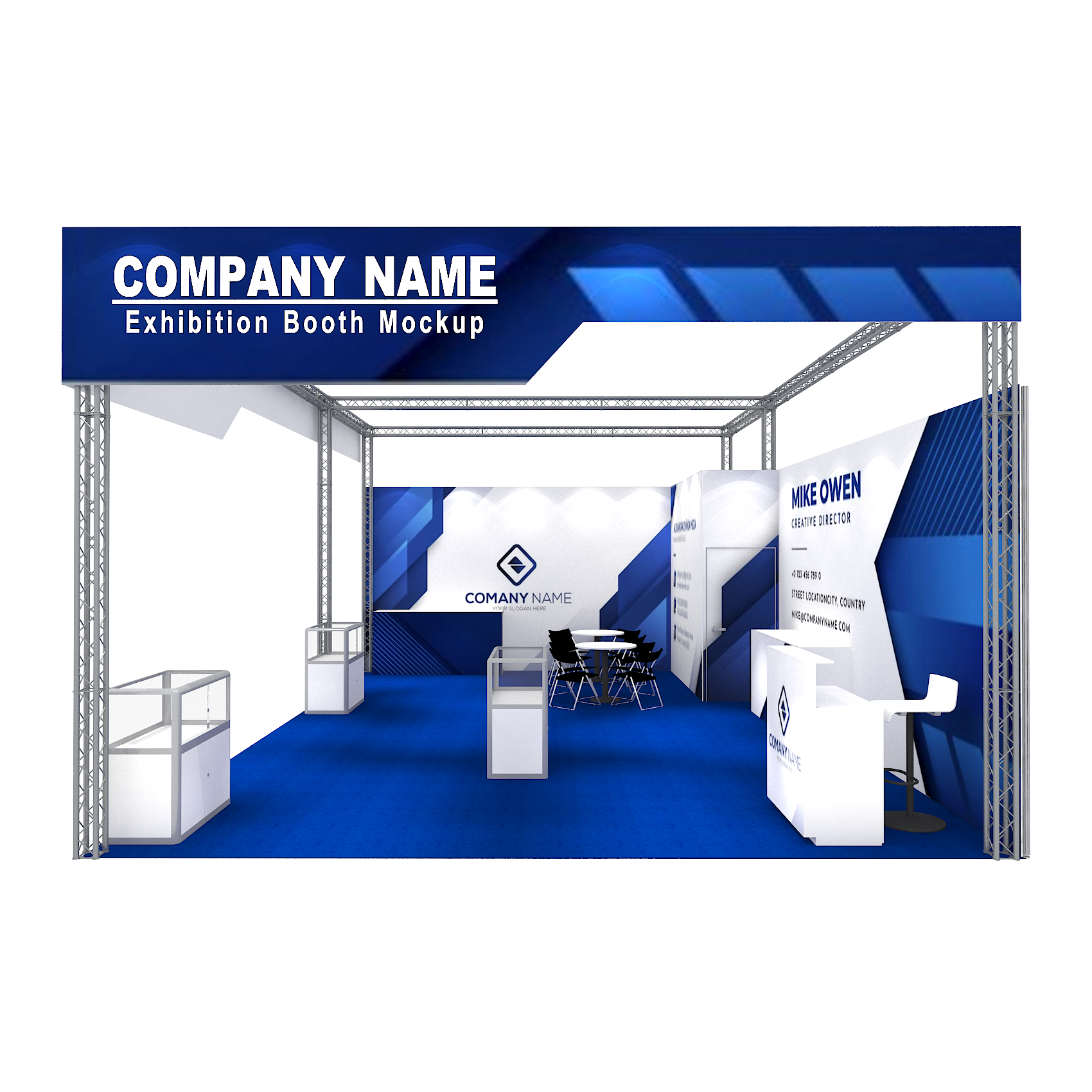 套裝攤位裝潢包含以下: • 攤位大小:600X900cm • 展位高度:400cm • 大圖輸出:1式 • 組合隔間:1式 • TRUSS:1式 • 地毯:(可選基本色系) • 70w燈具:22盞 • 插座:2個(110V/5A) • 燈箱櫃台:1座 • 玻璃展櫃:3座 • 展櫃:4座 • 圓桌:2張 • 摺疊椅(黑):8張 • 吧檯椅:8張 • 木門:1組 • 進撤場施工(林口以南需加車資)