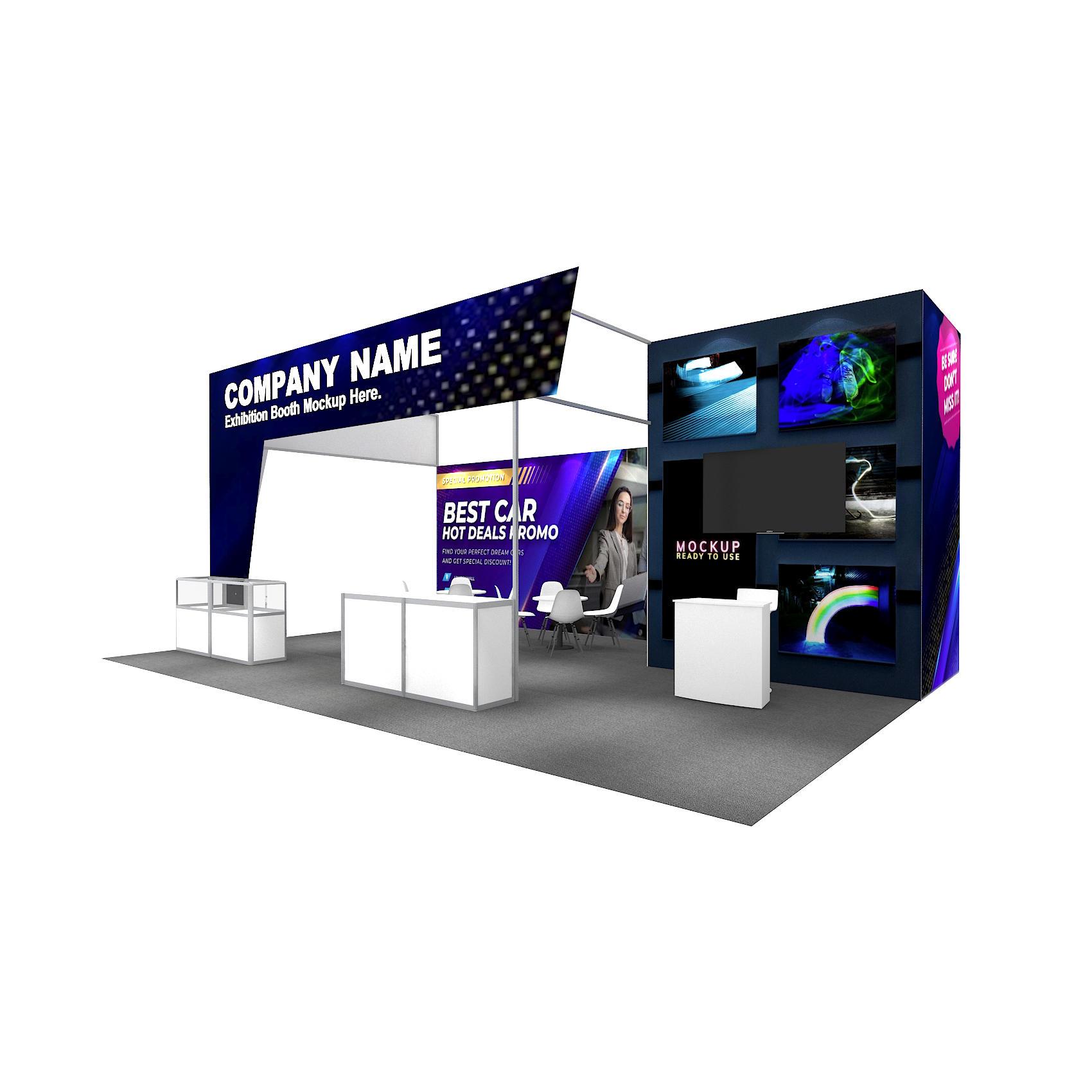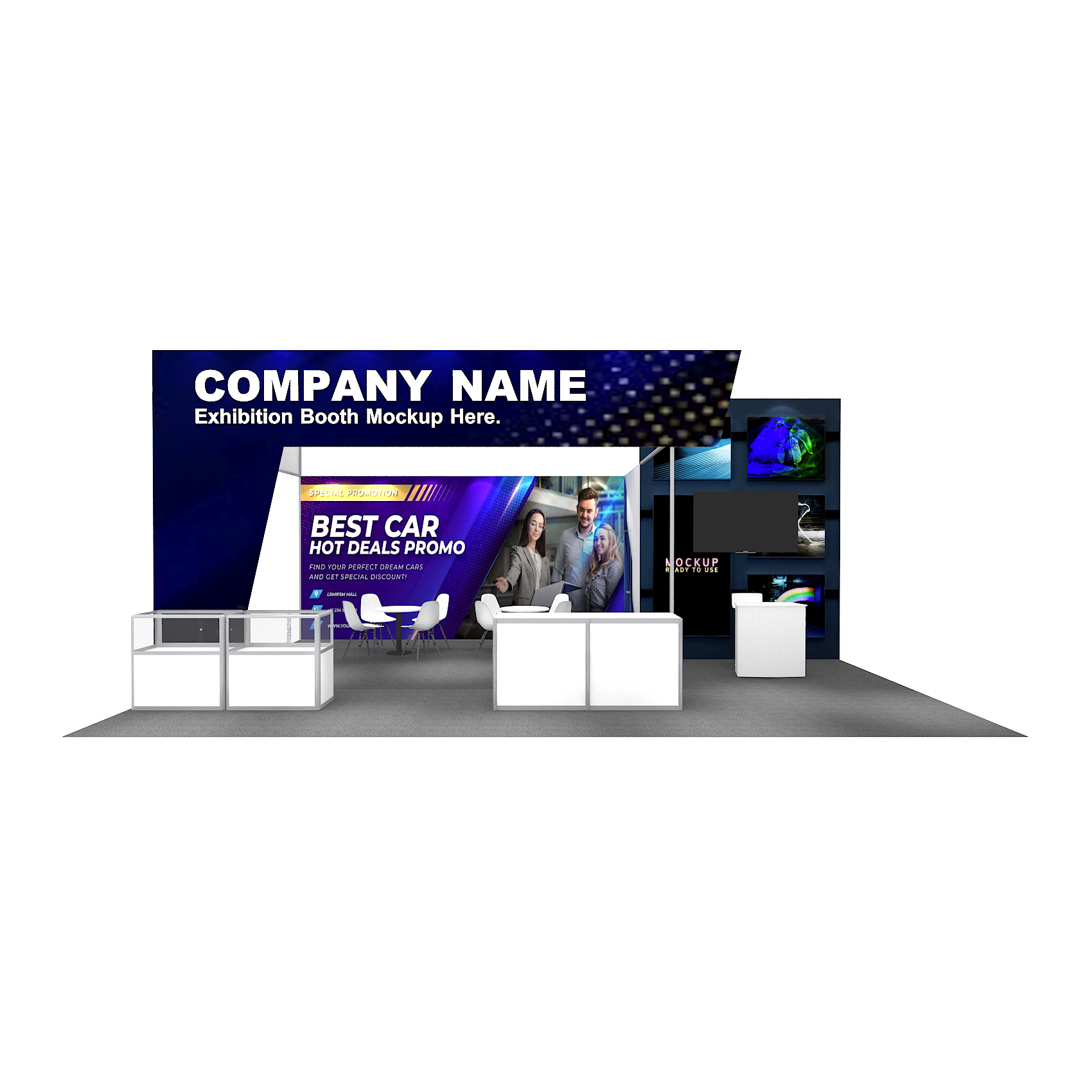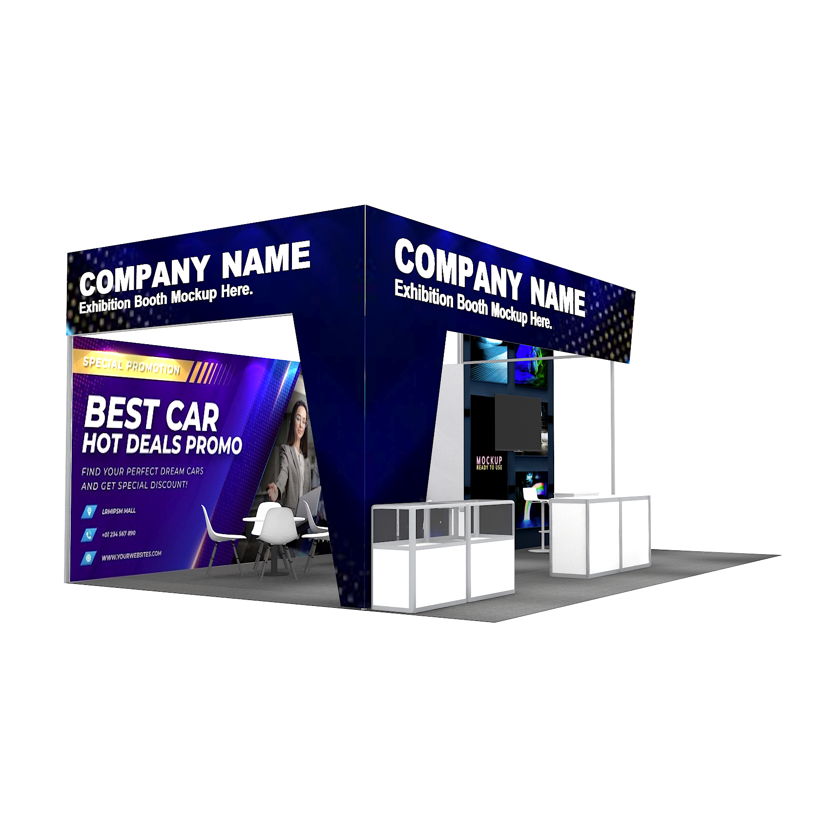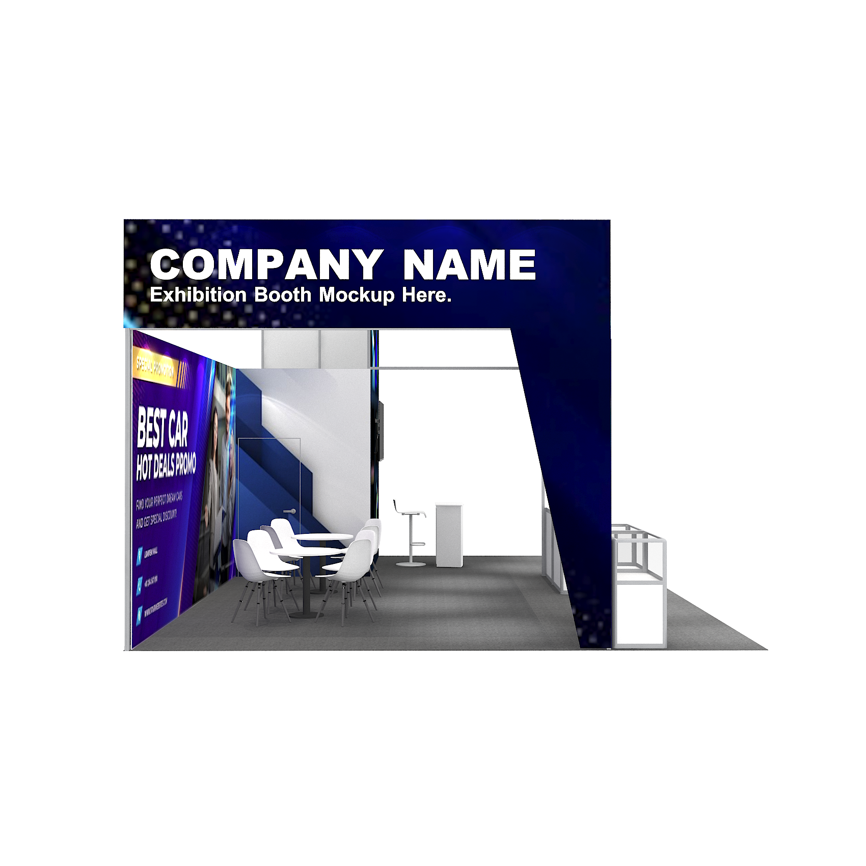套裝攤位裝潢包含以下: • 攤位大小:600X900cm • 展位高度:400cm • 大圖輸出:1式 • 組合隔間:1式 • 地毯:(可選基本色系) • 70w燈具:30盞 • 插座:2個(110V/5A) • 弧形櫃台:1座 • 玻璃展櫃:2座 • 展櫃:2座 • 電視:1台 • 圓桌:2張 • 摺疊椅(黑):8張 • 吧檯椅:1張 • 木門:1組 • 進撤場施工(林口以南需加車資)