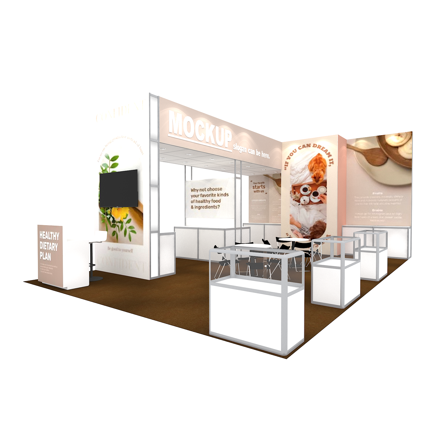 套裝攤位裝潢包含以下: • 攤位大小:600X900cm • 展位高度:400cm • 大圖輸出:1式 • 組合隔間:1式 • 地毯:(可選基本色系) • 70w燈具:30盞 • 插座:2個(110V/5A) • 燈箱櫃台:1座 • 玻璃展櫃:3座 • 展櫃:10座 • 圓桌:2張 • 摺疊椅(黑):8張 • 吧檯椅:1張 • 木門:1組 • 進撤場施工(林口以南需加車資)