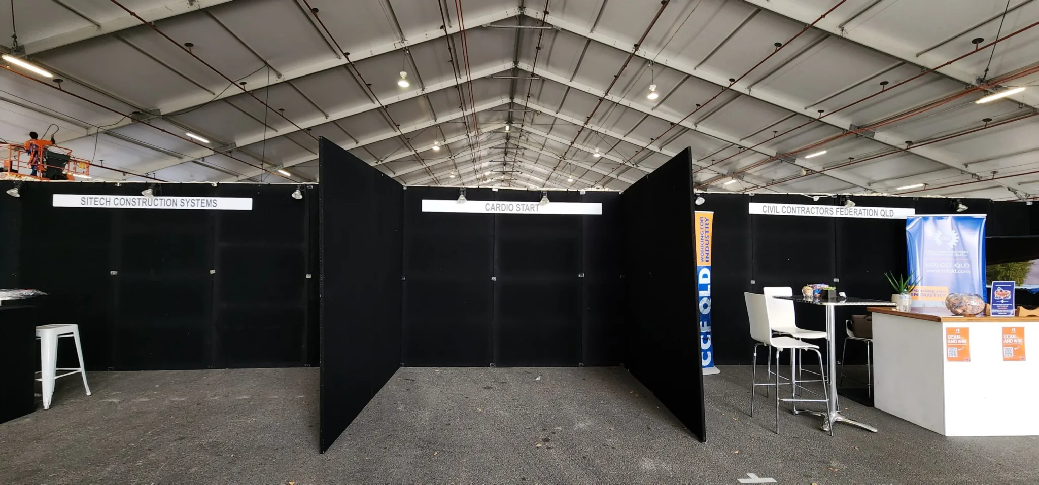 黑色組合隔間不僅在功能性上表現出色,還能提升整個展覽的視覺效果,營造出專業且高端的空間感。其靈活組裝、易於拆卸的特點,使其成為展場佈局中極具實用性的選擇。