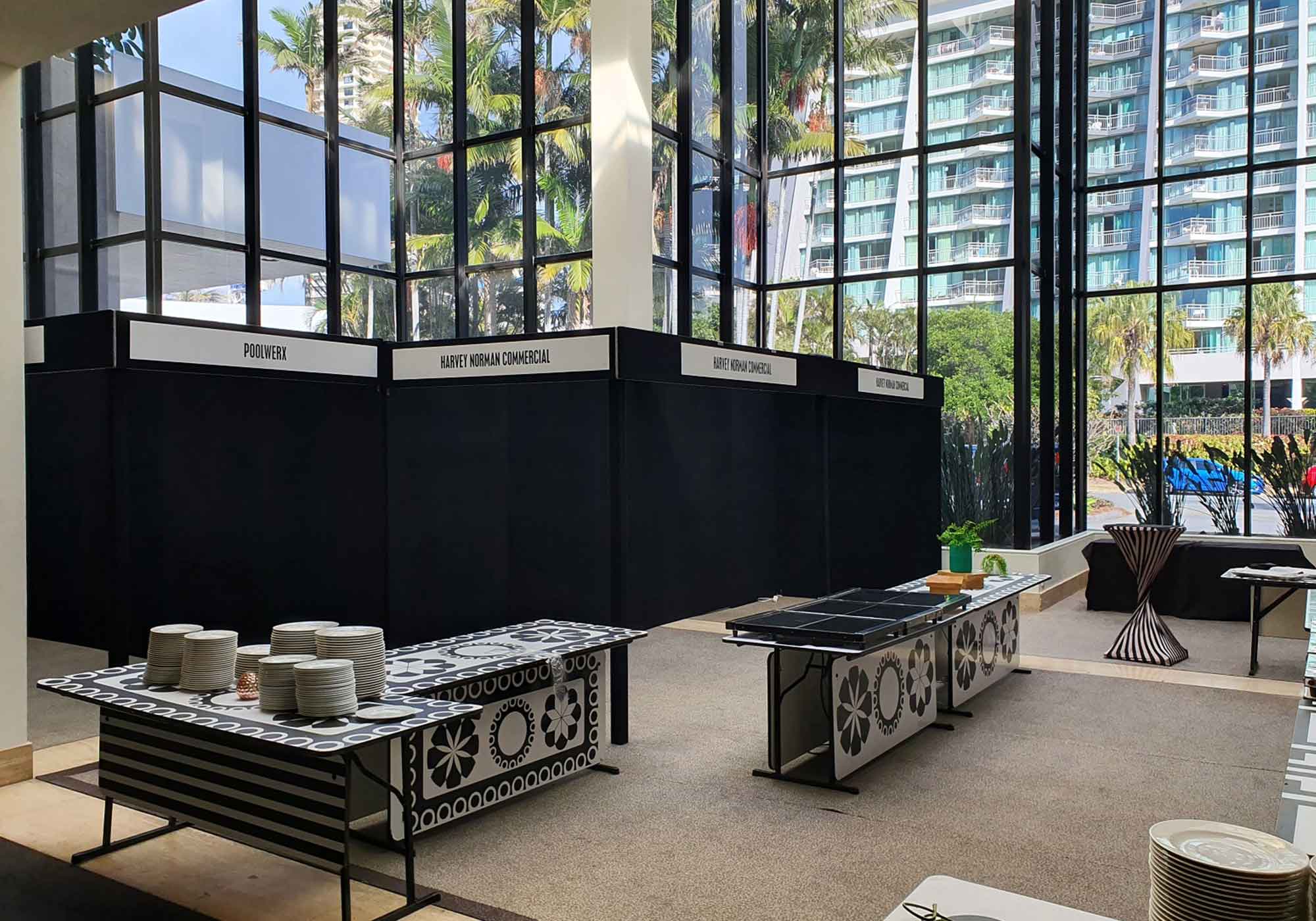 • 黑色主題:黑色隔間提供現代感與高端感,能夠很好地搭配其他展場元素,如燈光、展示物品等,營造出專業且有質感的展示氛圍。