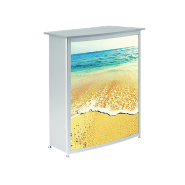 Q 400 櫃檯是一款專為展覽和展示需求設計的高品質產品,結合了優雅的外觀與實用的功能。
