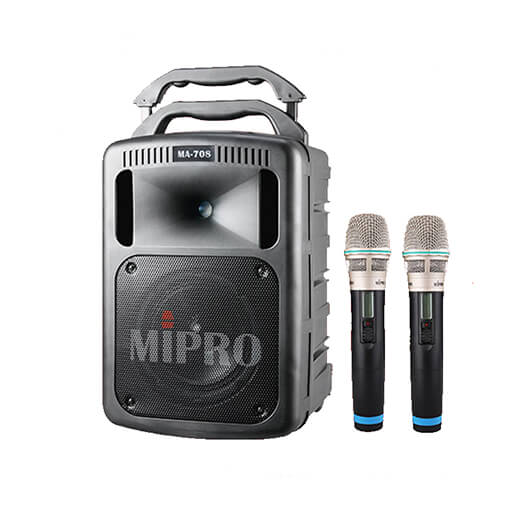 最大音壓: 108dB 喇叭系統:1.5吋高音及8吋低音 頻率範圍:50Hz-18kHz 音源輸入:MIC IN:XLR、6.3mm LINE:RCA 放大器:D類 輸出功率:190W 接收模組:可加裝4組 播音模組:內建藍芽、另有CD、USB、SD等錄放音座可供選擇 外接喇叭:6.3mm輸出插座 電源供應:AC100-240V、DC24-32V 充電電池:內建2只鉛酸電池或選購鋰電池 待機時間:7小時以上 尺寸:336x545x336mm(W x H x D) 重量:15.3kg