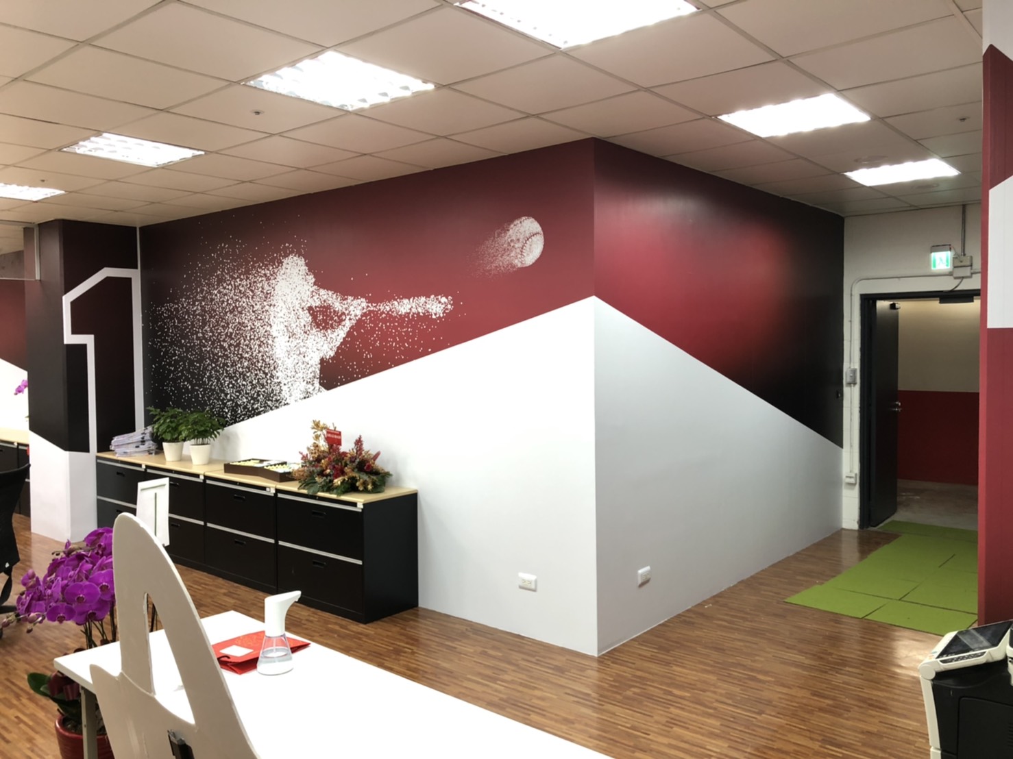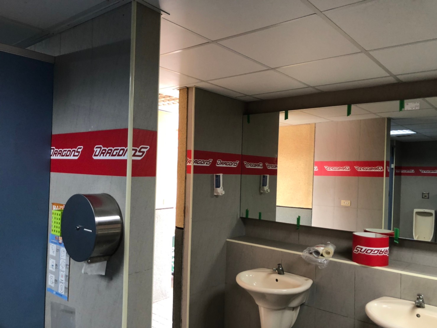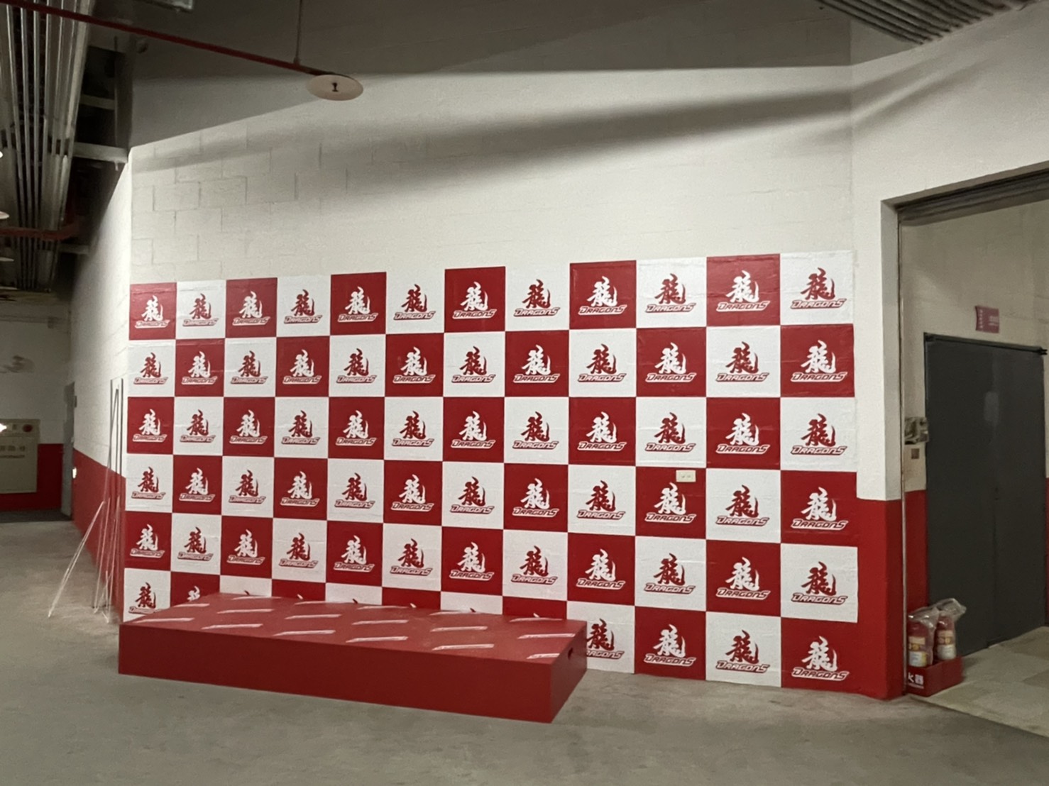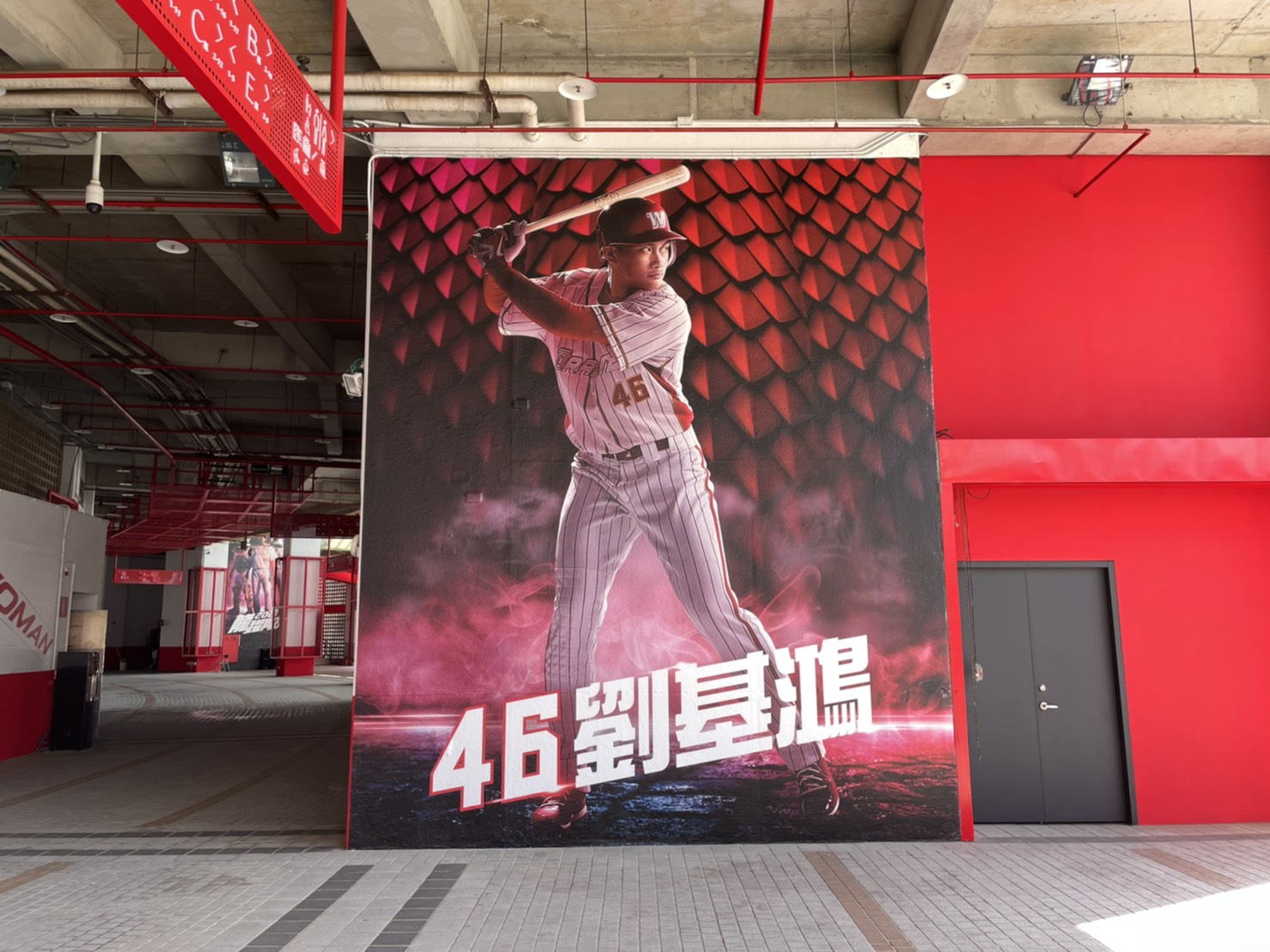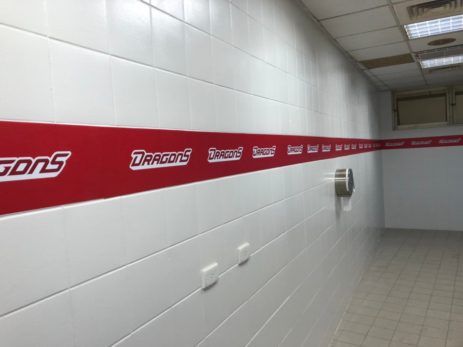 此次的製作為球場的形象廣告工程製作,從步道上的球隊形象旗幟製作、場館外部的大圖輸出、內部的球員大圖輸出、場館走道的石牆壁貼製作、廁所的Logo磚牆壁貼製作、辦公室牆面的壁貼製作,都是使用最新大圖輸出材質,粗糙面PVC材質。辦公室透明的外牆則使用全透PVC背膠與高遮蔽PVC,做大圖輸出,讓辦公室的氛圍多了一分質感。粗糙面PVC是金剛廣告製作新增的特殊材質,此材質可用在90%的粗糙石材壁面,擁有絕佳的服貼性,防水、不易脫落,,也適合室內裝潢使用,並且符合國際規範。